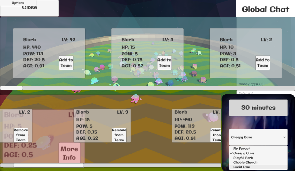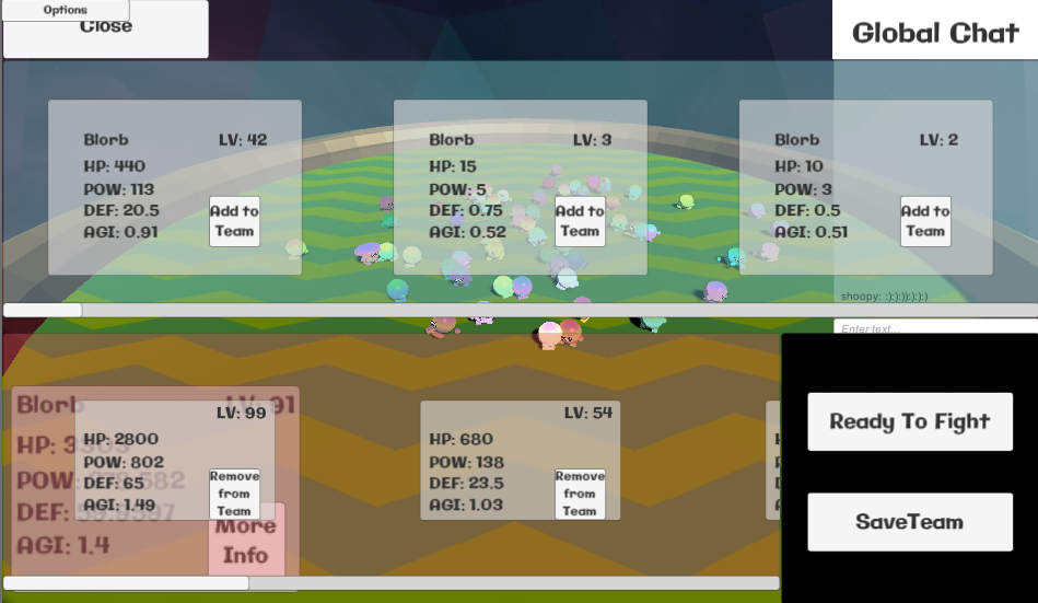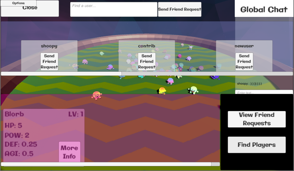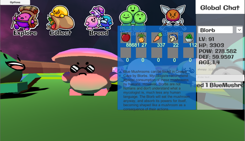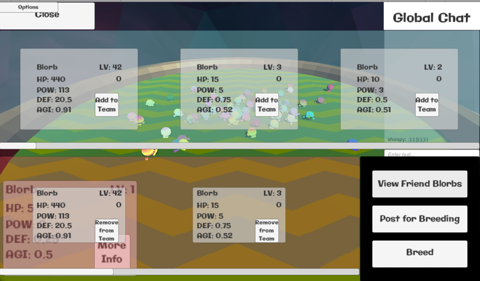 Blorbs were all stored and found using the _id flag that MongoDB gives to every document stored.  Upon logging in, the user would receive a response from the server giving them a list of all their Blorbs and items.  Using this, the Unity client would create all the appropriate items and Blorbs for the user and use these _id flags to update said specific Blorb during normal gameplay.