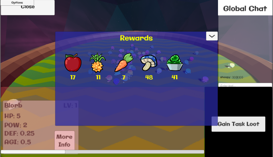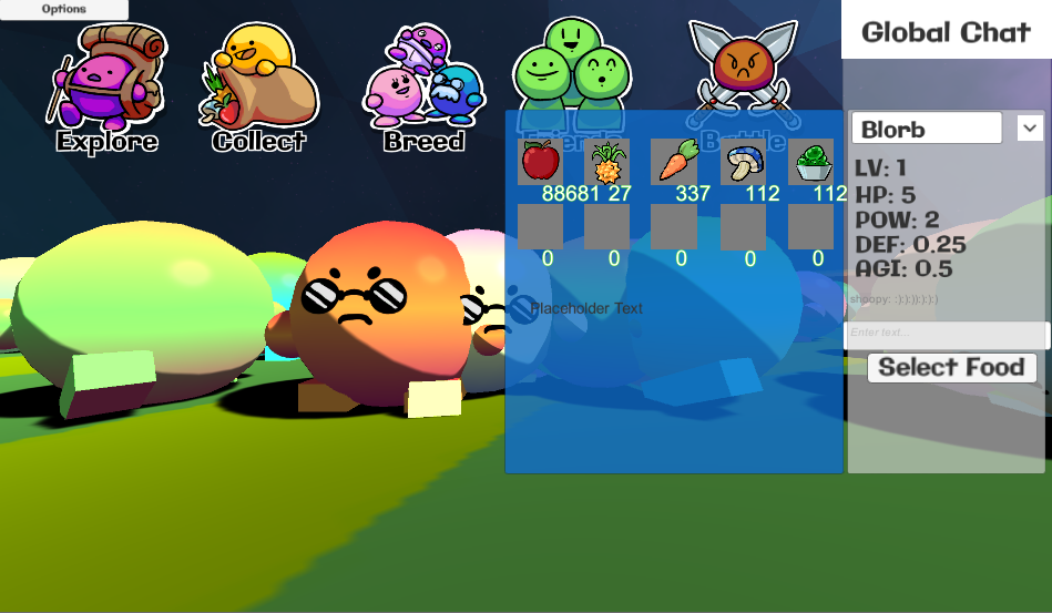 I also implemented a decent amount of anti-cheat in our game.  This was mostly done on the server, which double checked to verify the client’s request is valid.  For example, when feeding a Blorb 50 apples, the server would check to make sure the client actually has 50 apples.  I also implemented a simple token system using JWT (JSON Web Tokens), ensuring that the user connecting to the server is the same user.  Every request contained the token for the client, given to them upon successfully logging into the server.  This token would expire in 10 minutes and would be refreshed each time the user made a new request.